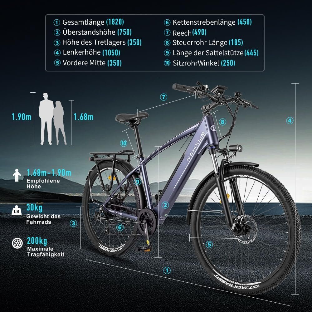 27M204 E-Bike 27,5 Zoll Trekking/City, 36V 13Ah Akku, bis 100 km, 250 W Motor, EU-konform, App, klappbar