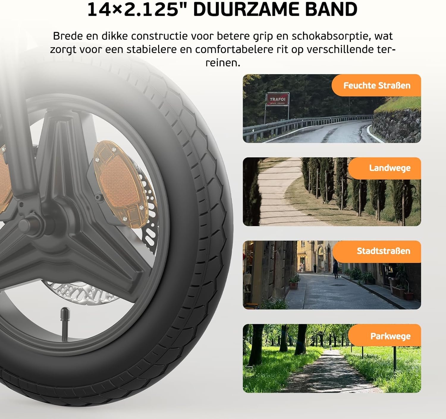 • 14 inch electric bicycle: The extra wide design provides excellent road grip and good suspension on urban surfaces. Reduced rolling resistance for energy-saving progress in the city